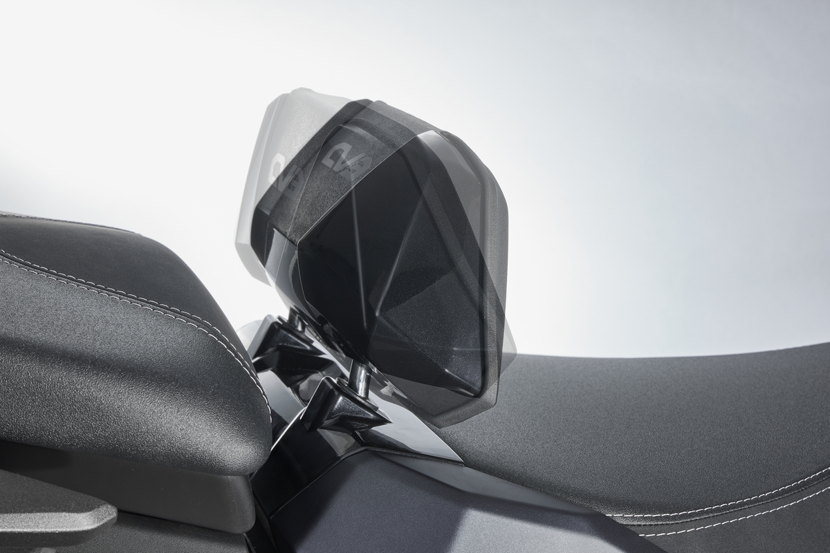 Junto a la innovación del sistema de suspensión KALS, el modelo CV3 575 introduce la función del bloqueo electrónico de la inclinación y de la suspensión. Con un solo gesto la experiencia de conducción cambia por completo. En maniobras a baja velocidad o en aparcamientos, transmite seguridad adicional; y en semáforos o atascos urbanos, aporta comodidad y confianza, ya que libera al piloto del esfuerzo de sostener el peso del vehículo.
